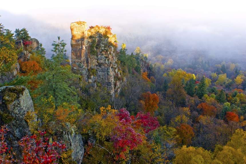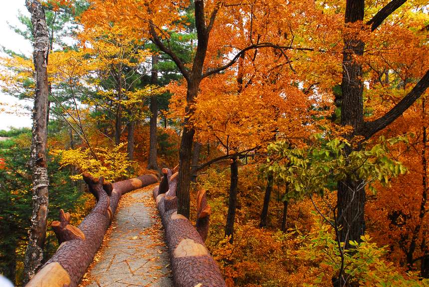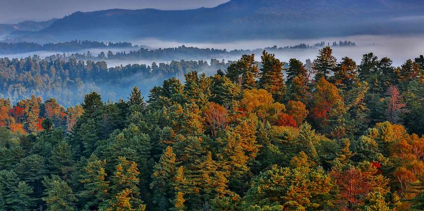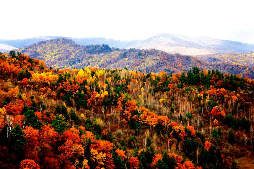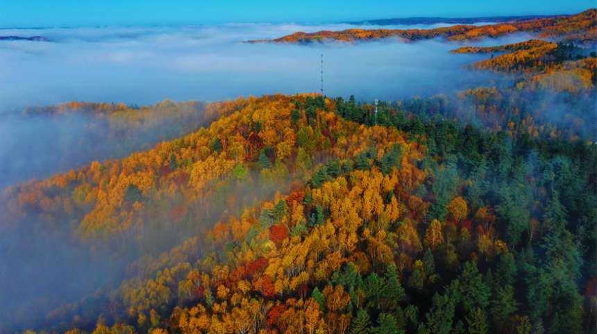 深秋时节,黑龙江省伊春市层林尽染,茂密的林海间,五花山色缤纷艳丽,呈现北国金秋的独特景观。
